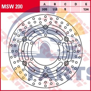 Диск гальмівний передн плаваючий, 305/118x5мм 6x134мм, диаметр фіксуючого отверстия 9мм, высота 0 BMW K, K1, R 100 RS (16V)/1000/1100LT/1100R/1100RS/1100RT/850R/850RT 1989-2001 KIA Clarus TRW MSW200